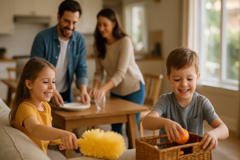 Investissez la hauteur avec des rangements muraux, et n’hésitez pas à revisiter l’aménagement régulièrement. Parfois, déplacer un meuble ou supprimer un fauteuil change tout ! - Comment motiver toute la famille à participer ?