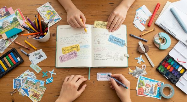 - Carnet à souvenirs : À la maison, proposez aux enfants de coller leurs trésors trouvés, dessins du jour, photos et anecdotes dans un carnet dédié à leurs sorties « grande bleue ».